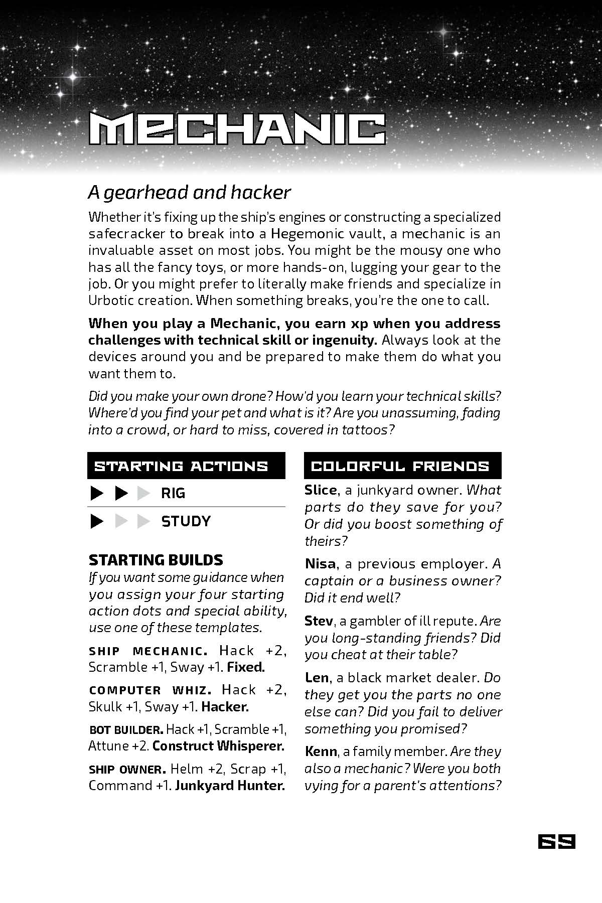 Scum and Villainy is a stand-alone RPG based on the Forged in the Dark game engine. In this book, you’ll find: